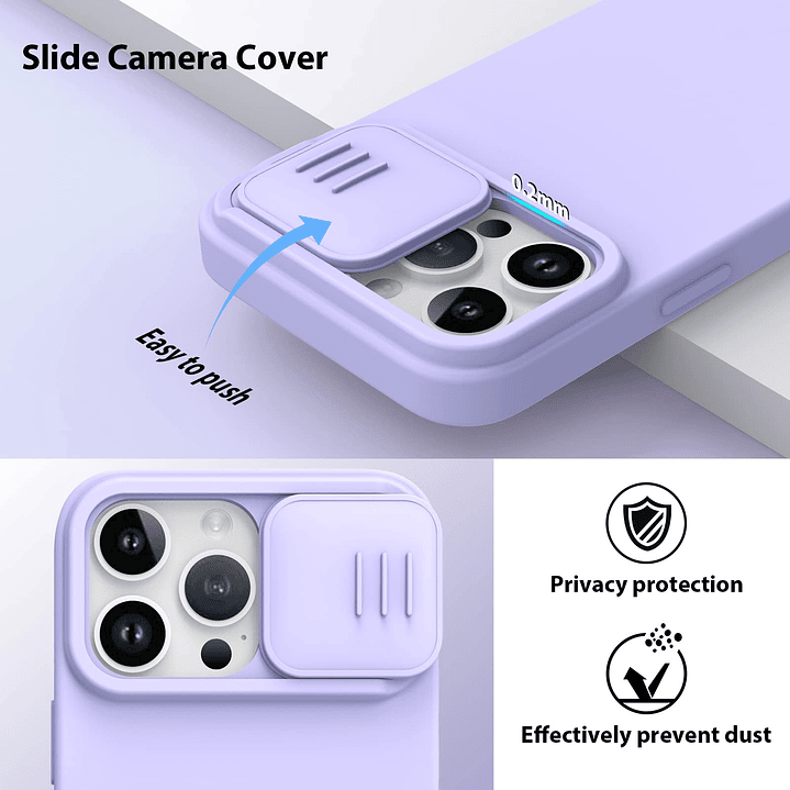 Deslice el diseño de protección de la cámara de la cubierta, proteja la cámara desde cero. Hecho de silicona líquida ambiental y no tóxica. Antihuellas y manchas de sudor. Se ajusta perfectamente a los botones y curvas de su dispositivo. El forro de microfibra dentro del estuche protege su teléfono contra rasguños.