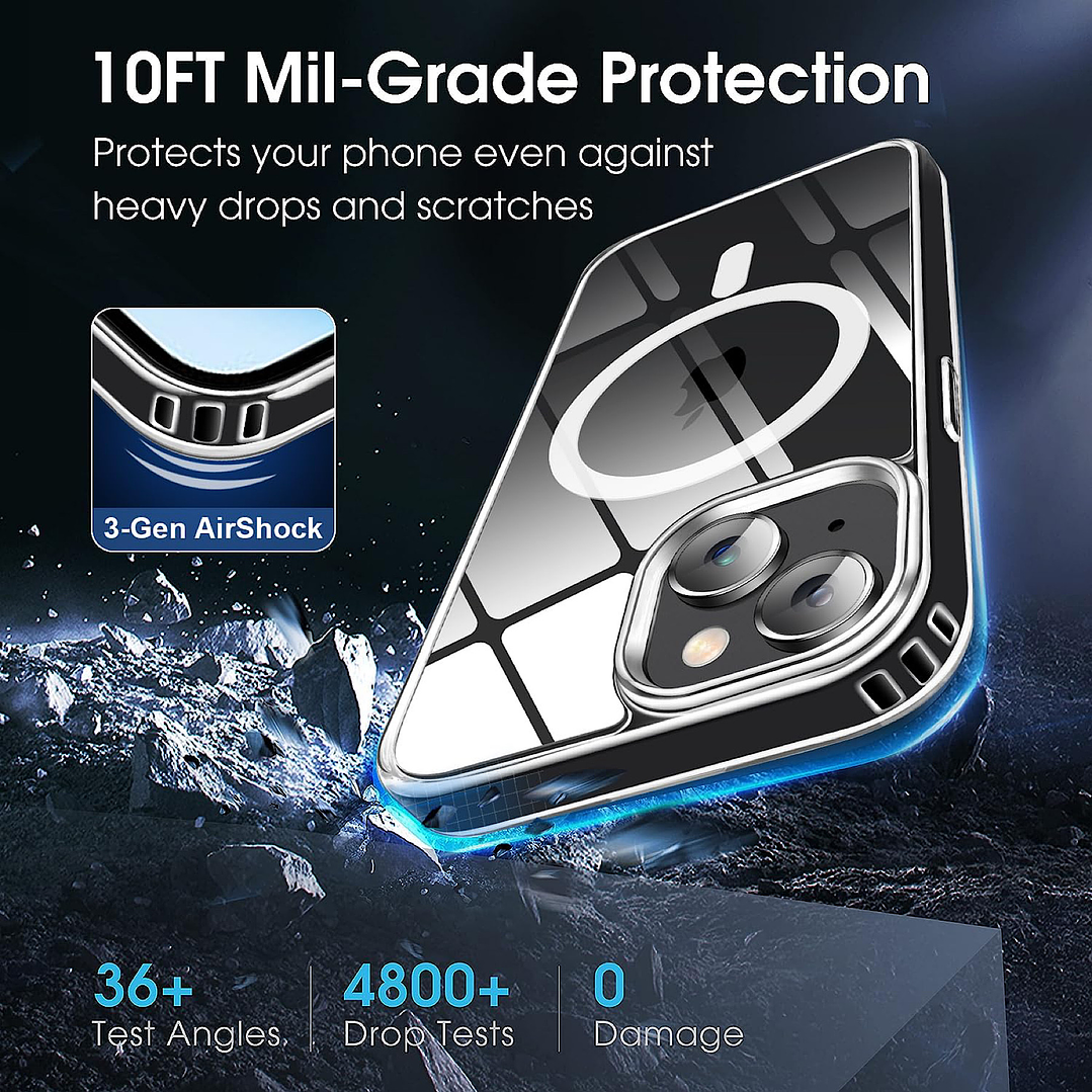 Atracción magnética: case con Magsafe es compatible con cargadores Magsafe y otros cargadores inalámbricos. Compatible con todo tipo de accesorios que tengan magsafe cargador inalámbrico magnético, con batería Magsafe trasera, con soporte Magsafe para coche, cartera magnética.