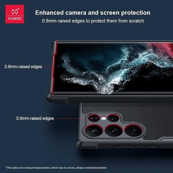 Biseles frontales y traseros elevados 0,8mm para ofrecer protección para la pantalla y la cámara trasera. Fácil acceso a todos los botones y funciones, recortes perfectos para altavoces, cámara y otros puertos.Gracias a la tecnología de moldeo de alta precisión de XUNDD y al proceso de control de calidad del 100% se asegura que la funda es practica y agradable para usar.