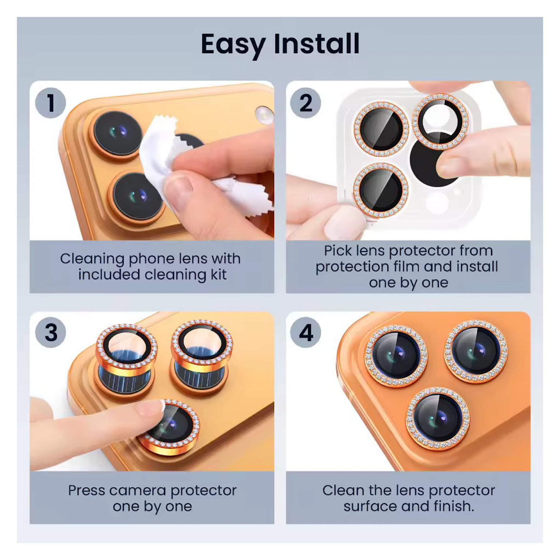 Protector para los lentes de la cámara con brillitos, Ideal para lucir tu dispositivo y proteger tu cámara, compatible solo con iPhone 17 Pro Max-17 Pro, el material es de Aluminio y Vidrio delgado.